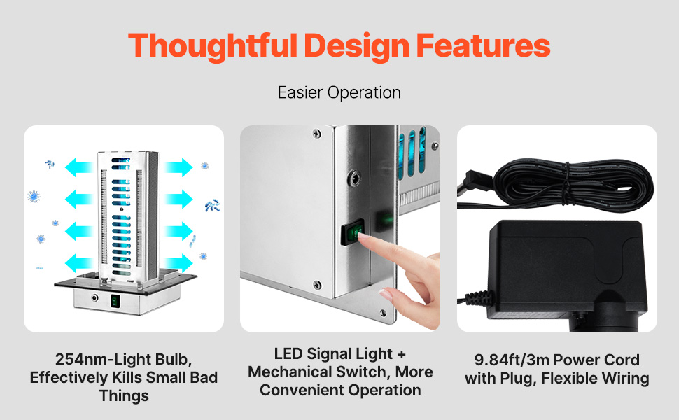 Our HVAC Duct Purifier is equipped with a mechanical switch for simple operation. The LED indicator clearly shows the bulb's operating status. It comes with an adapter, allowing homeowners to plug it in directly for added convenience.