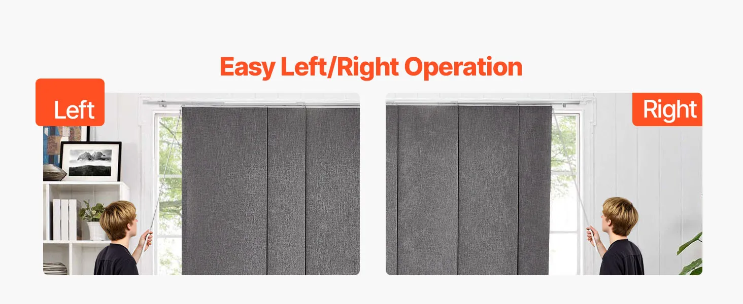 - Smooth, Quiet Operation: The panel blinds for sliding doors are equipped with a sliding track system for silent and seamless gliding. Dual stack options allow you to slide them left or right, providing flexible light control based on your preferences