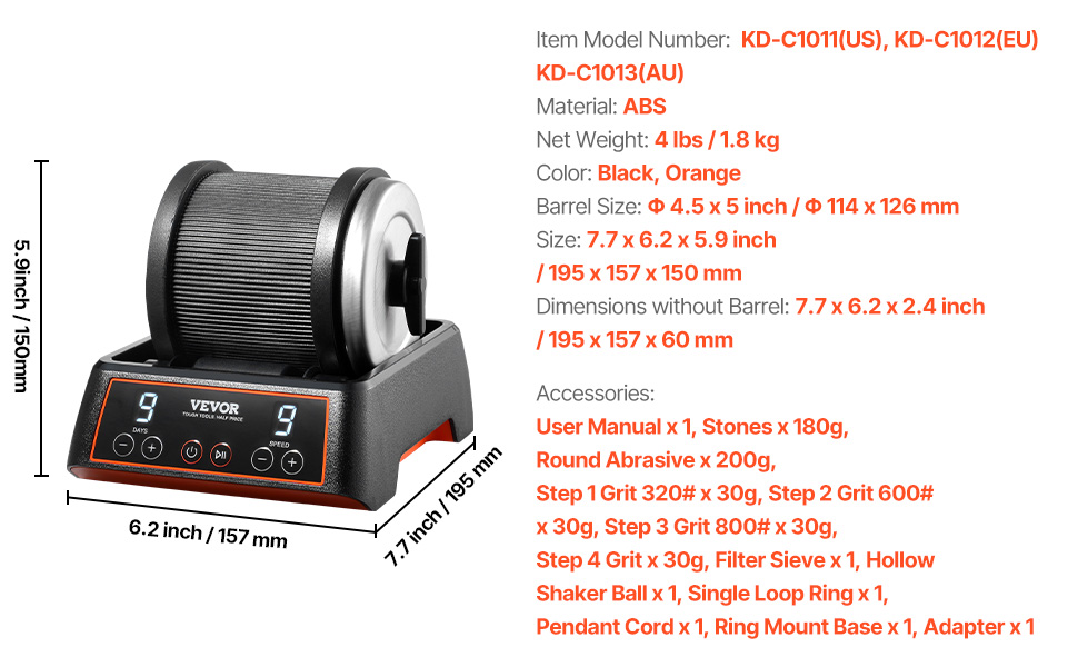 - Upgraded 9-Speed Control: This rock polishing kit features an easy-to-use operating panel, allowing you to choose from 1-9 speeds and 1-9 day timer. Whether you're an 8-year-old beginner or a rock collection enthusiast, you'll enjoy effortlessly polishing gemstones to create crafts comparable to those of a master.