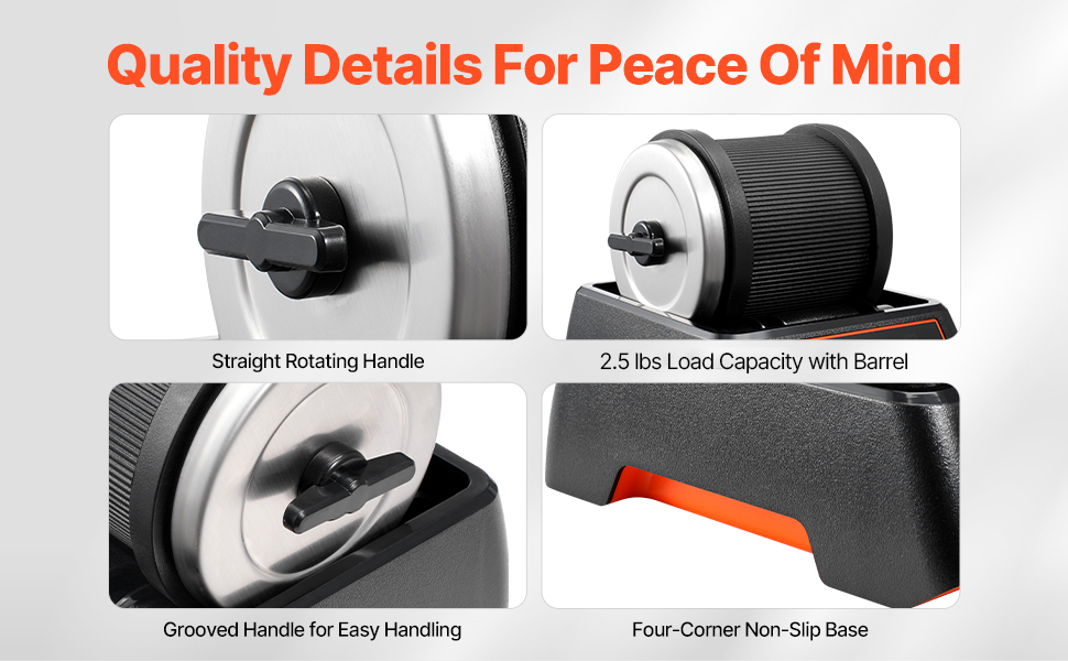The rock polisher features an upgraded barrel design with high sealing and an easy-to-twist-off lid. The thoughtful grooved handle and anti-slip pads keep the machine steady and secure during operation.
