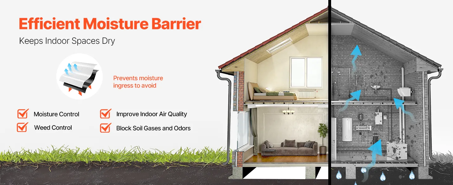- Efficient Protection: The dual-sided black and white design offers excellent reflectivity on the white surface and superior light-blocking on the black side. This double-layer, anti-seep barrier is great as a crawl space moisture barrier to minimize vapor penetration.