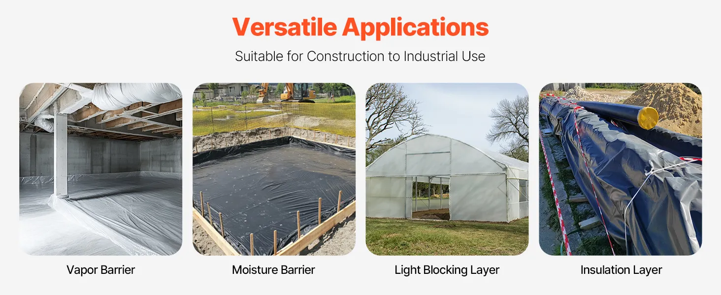 - Versatile Applications: Ideal for barrier protection, thermal insulation, and seepage resistance, and light-blocking entertainment setups. This heavy duty plastic sheeting is suitable for both industrial and construction environments.
