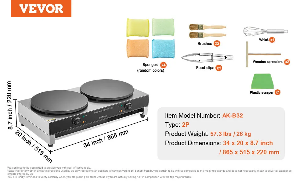 VEVOR 16-Inch Electric Crepe Maker Commercial Crepe Machine 3400W Double Head