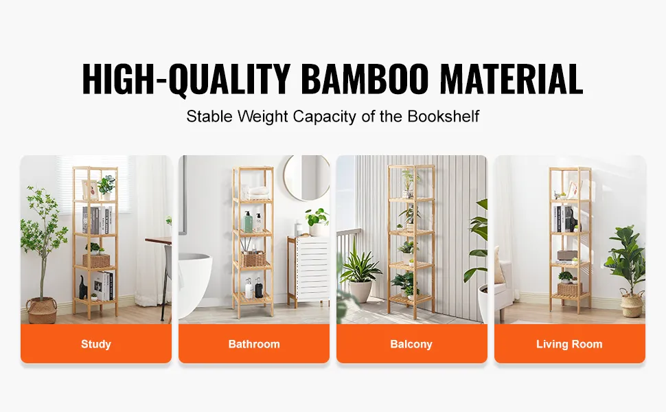 - Thoughtful Details: The corner bookshelf is comes with protective crossbars for added stability, preventing items from accidentally falling. The surface is coated with friendly waterproof NC varnish, non-toxic and odorless, easy to clean, making maintenance simple while also protecting the bamboo and extending its lifespan.