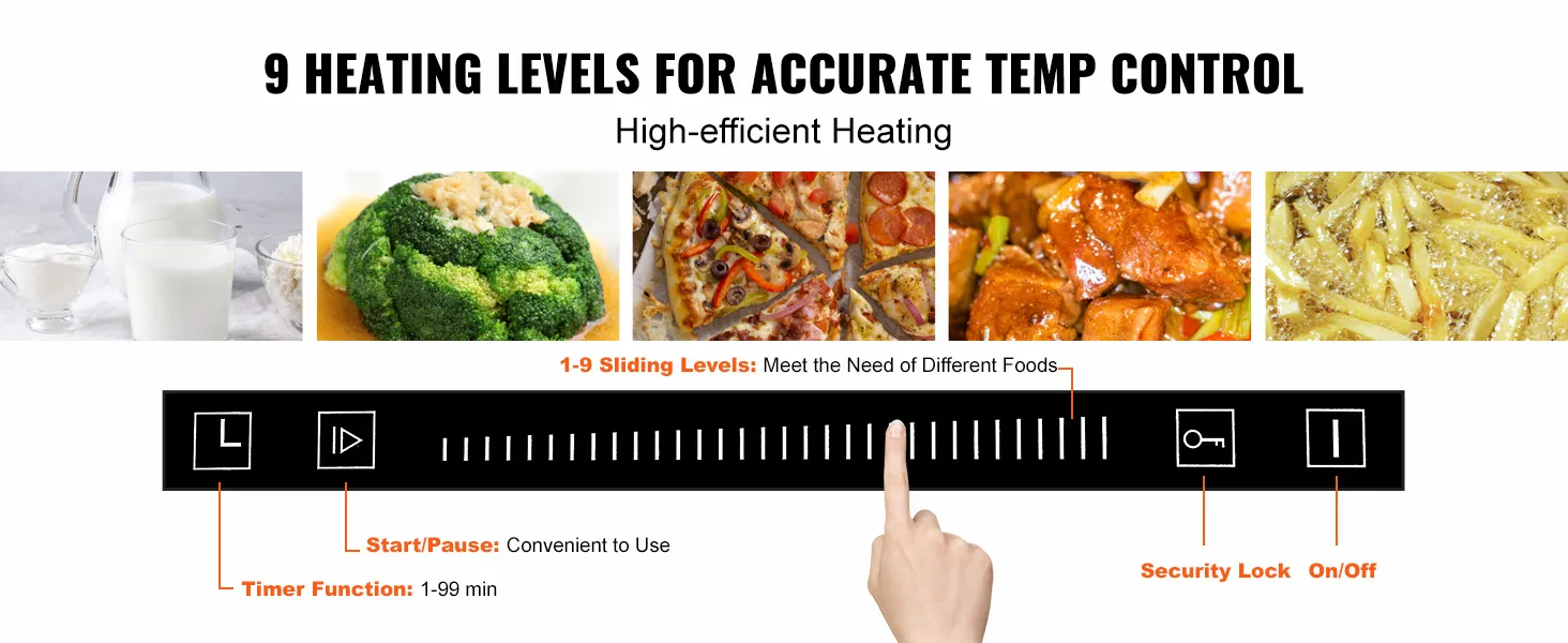In the VEVOR Cooktop, you can find intuitive sensor touch controls. These controls are easy to use and understand. You can adjust the settings with just a simple touch. This makes cooking more convenient and less complicated. The touch control is also durable and responsive. They ensure precise control over your cooking. The sensor touch technology enhances safety and usability. Sensible sensors add to the cooktop’s modern appeal.