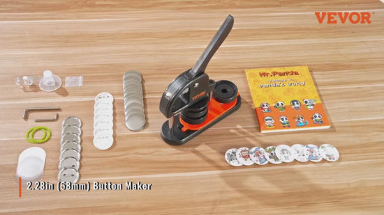 VEVOR Button Maker Machine, 0.98 inch/25mm Pin Maker with 500pcs Button Parts, Button Maker with Panda Magic Book, Ergonomic Arc Handle Punch Press Kit, For Children DIY Gifts and Christmas