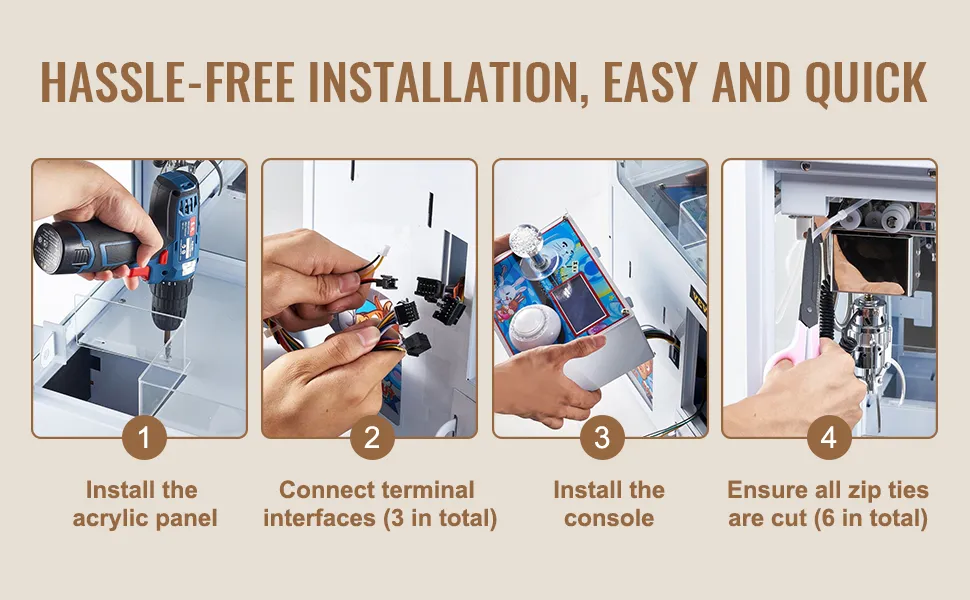 Say goodbye to complex installation steps; our claw machine can be set up in just 5 easy steps, allowing you to complete the installation with ease.