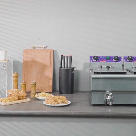 - Large Capacity: With two separate oil tanks (Water Capacity: Max 11.6Qt/11L each, Oil Capacity: Max 8.5Qt/8L each), this commercial electric deep fryer allow you fry different types of foods individually and maintain distinct flavors. Perfect for delis, concession stands, snack bars, and parties.