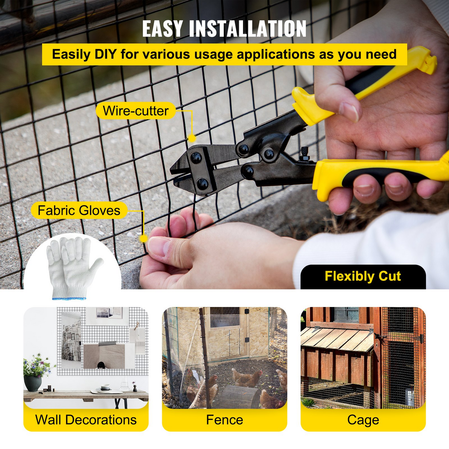 VEVOR Hardware Cloth, 24" x 100' & 1"x1" Mesh Size, Galvanized Steel Vinyl Coated 16 Gauge Chicken Wire Fencing w/A Cutting Plier & A Pair of Fabric Gloves, for Garden Fencing & Pet Enclosures, Black