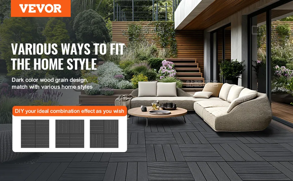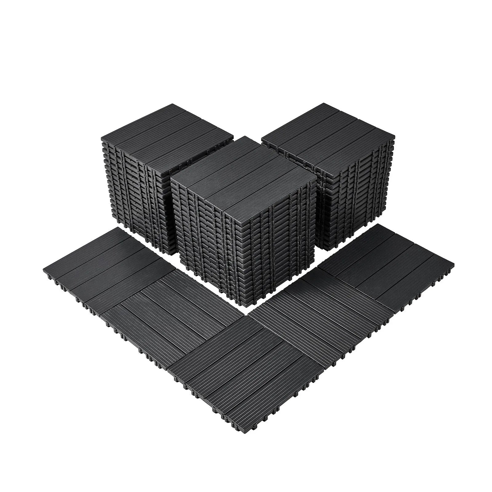 VEVOR Interlocking Deck Tiles 54 Pack 11.6" x 11.6" Plastic for Porch Dark Grey