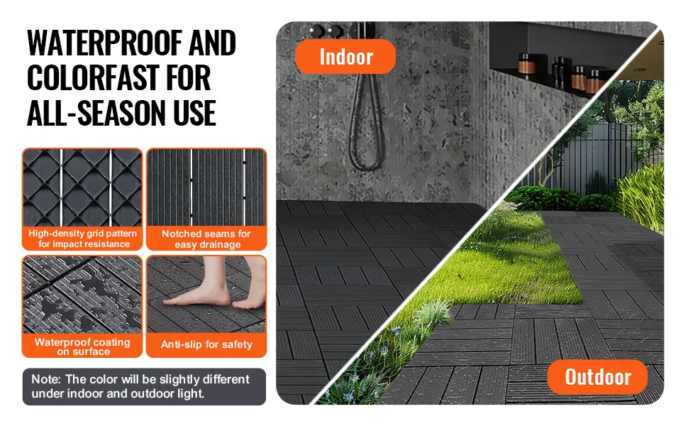 - Waterproof and Slip-Resistant: The surface features a special anti-slip coating, with grooves and drainage gaps to ensure quick water runoff during rainy seasons, preventing puddles and slips.