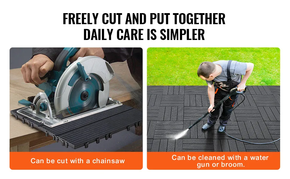 Simply snap the tiles together for quick installation. You can also use a power saw for cutting and reassembling. Regular maintenance is as easy as rinsing them off.