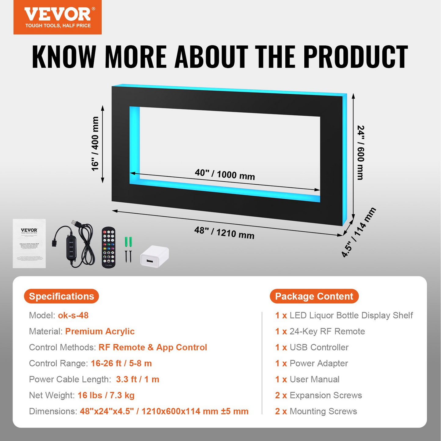 VEVOR LED Lighted Liquor Bottle Display Bar Shelf RF & App Control 48" Square