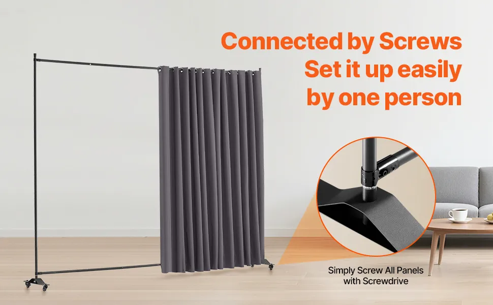 - Flexible and Mobile: Designed with four universal wheels, including two lockable ones and two movable ones, our curtain divider stand for room separation can be easily moved to any desired location. You can conveniently change the position of the divider with the flexible wheels to suit your needs.