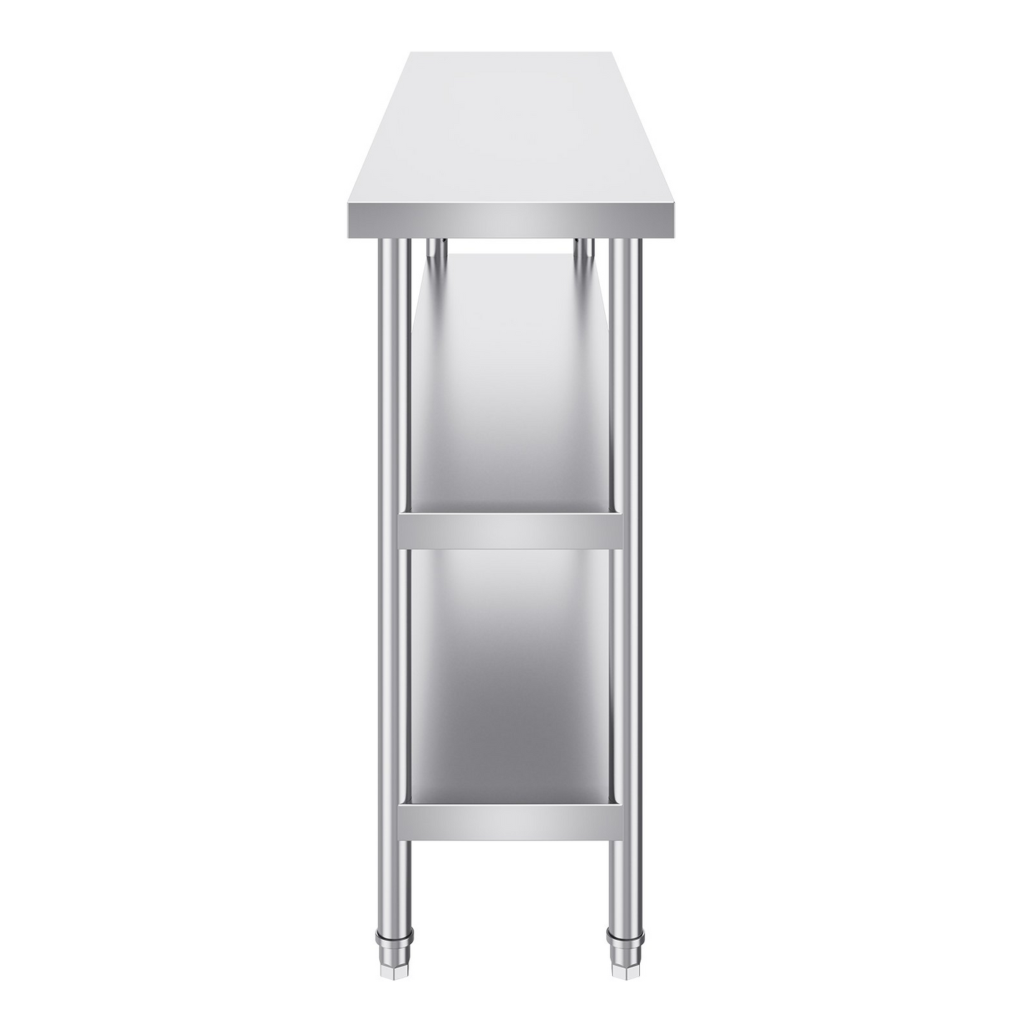 VEVOR Stainless Steel Food Prep Table, 14 x 60 x 34 Inch Commercial Kitchen Worktable, with 2 Adjustable Undershelf, Heavy Duty Prep Table Metal Work Table for BBQ, Kitchen, Home, and Garage