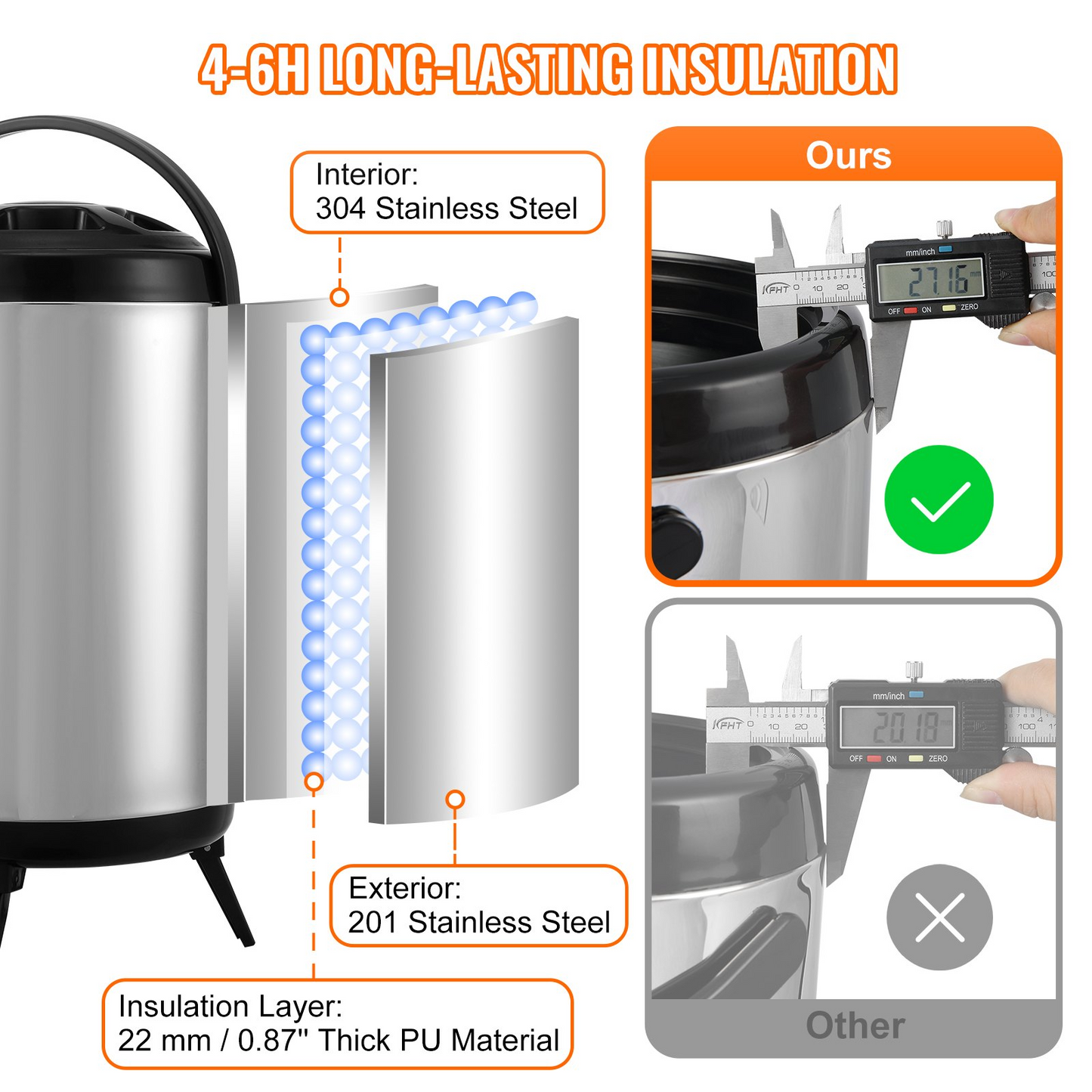 VEVOR Stainless Steel Insulated Beverage Dispenser, 2 Gallon 7.6 Liter, Thermal Hot and Cold Drink Server Dispenser with Spigot Handle, Food-grade for Hot Tea Coffee Water Restaurant Drink Shop