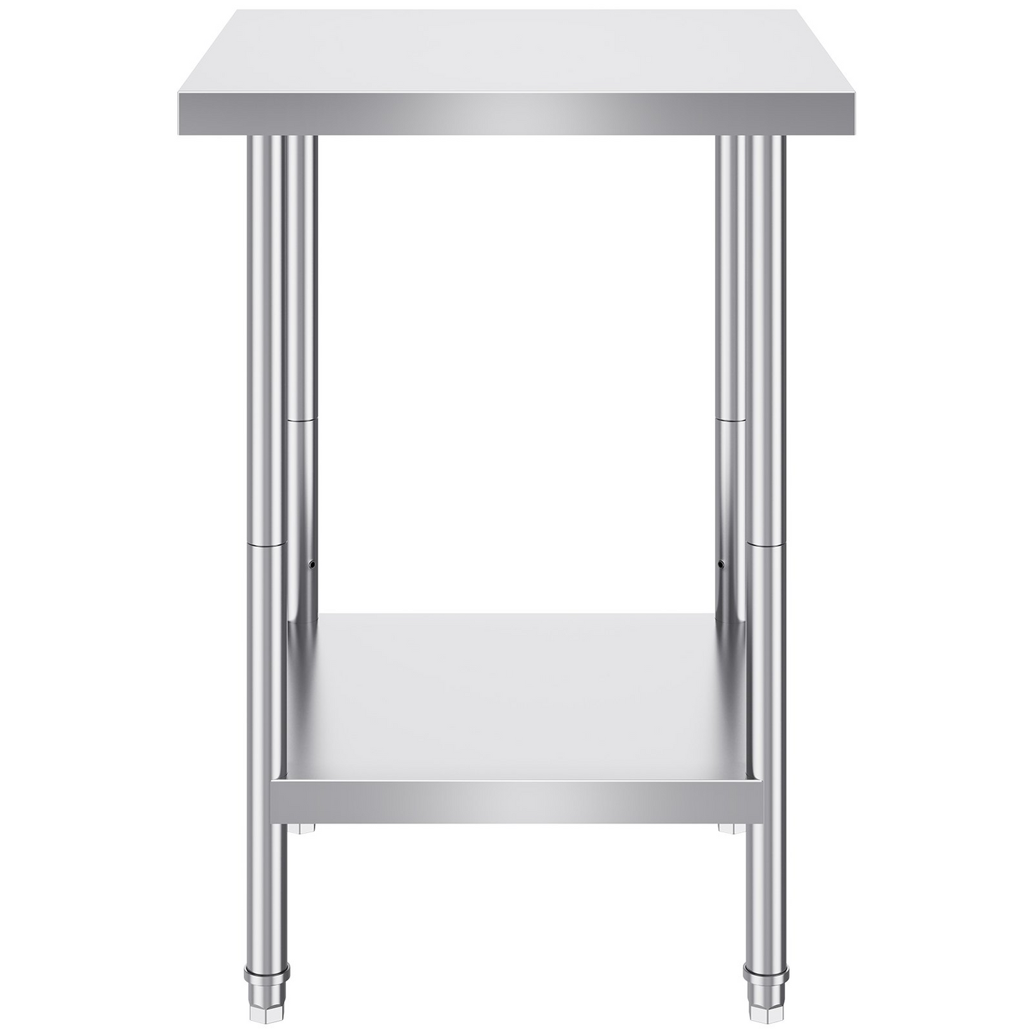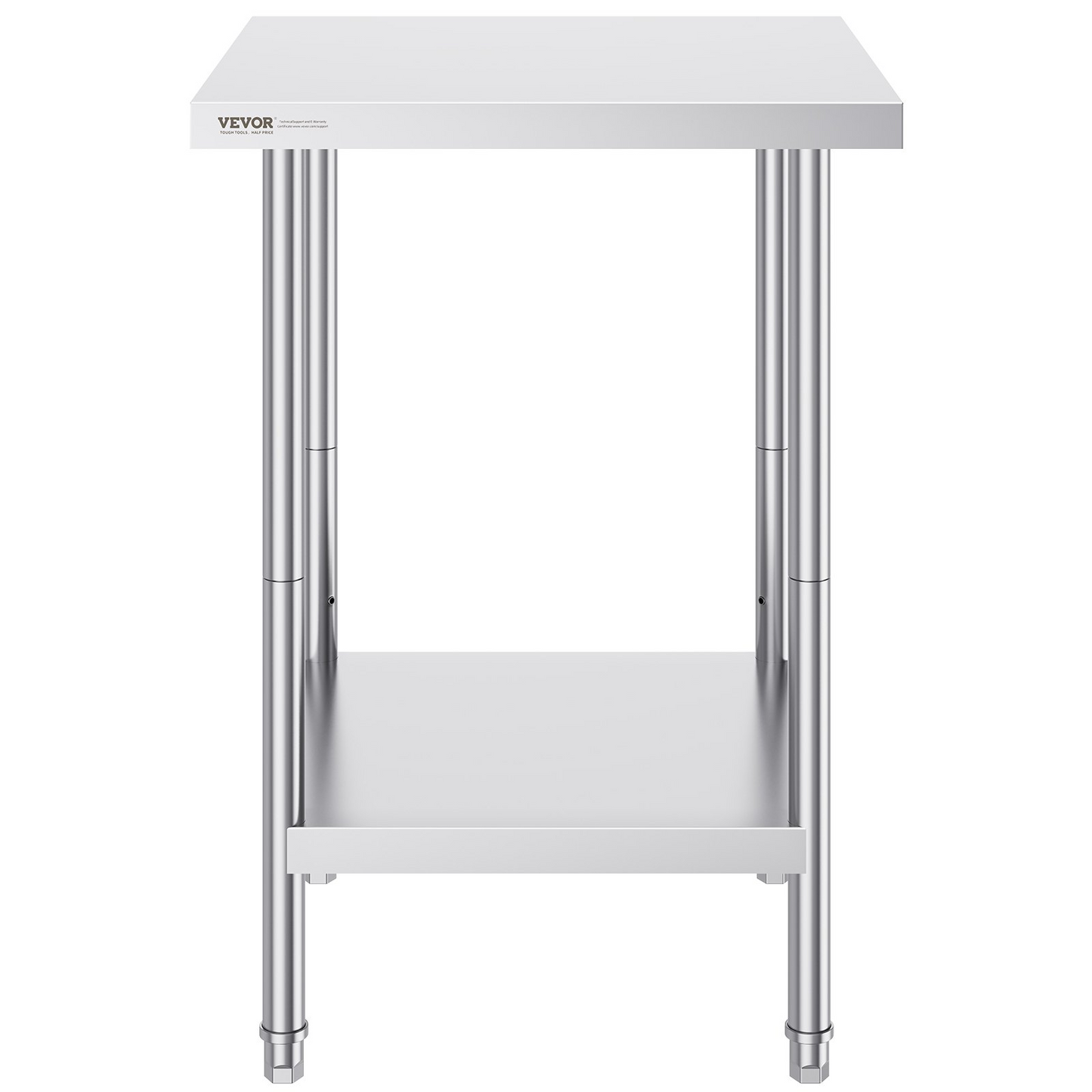 VEVOR Stainless Steel Prep Table, 24 x 24 x 34 Inch, Heavy Duty Metal Worktable with 3 Adjustable Height Levels, Commercial Workstation for Kitchen Garage Restaurant Backyard
