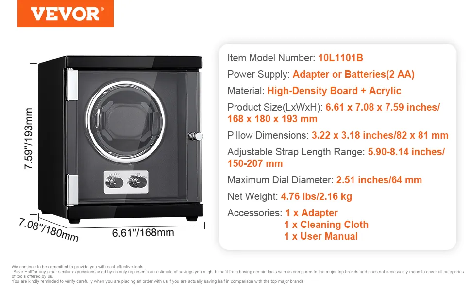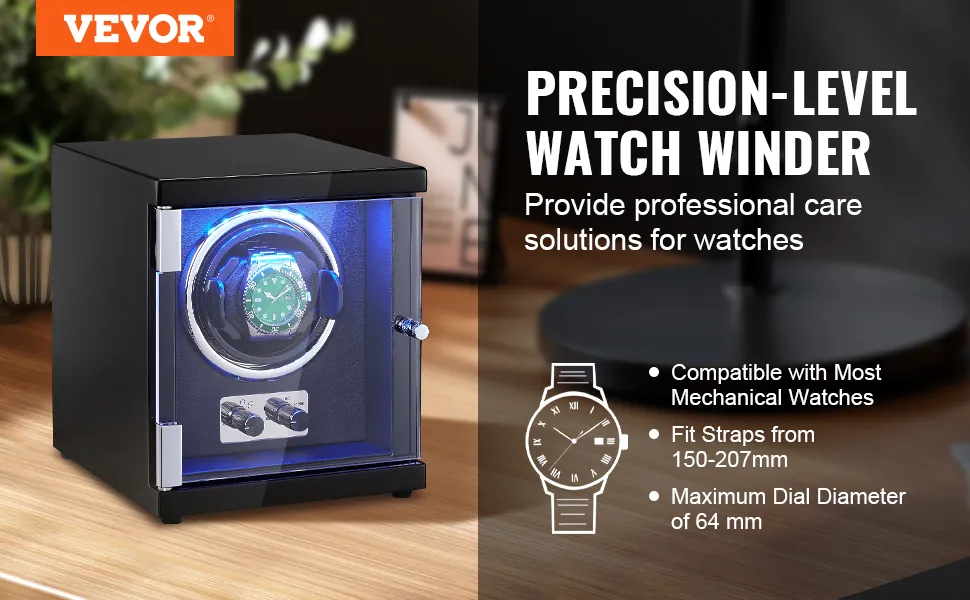 The VEVOR automatic watch winder offers multiple modes. You can choose from various winding settings. This allows you to match the winder to your watch’s needs. The adjustable speed provides further customization. There is also a way to set the speed to suit different watch types. It helps in the optimal care of your watches. It ensures they are wound correctly and safely. Multiple modes and adjustable speeds are essential for watch maintenance. They make the winder suitable for several automatic watches. These settings help keep your watches in perfect condition.